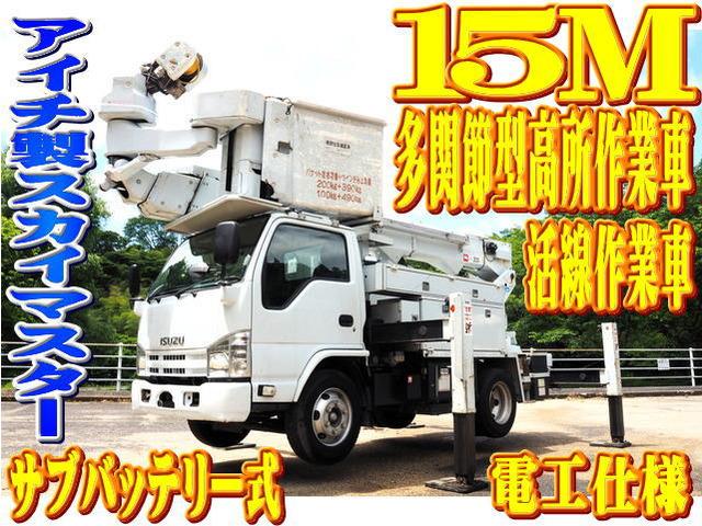 活線作業車!!エルフのアイチ製スカイマスター15mSN15B高所作業車電工仕様サブバッテリー式になります。